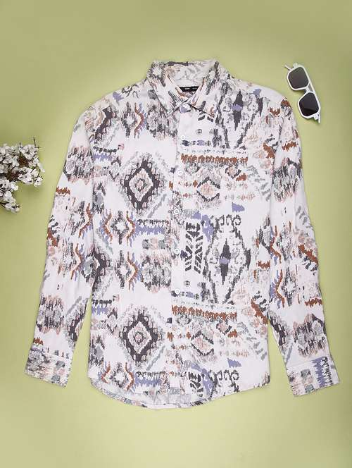 men printed long sleeve regualr fit casual shirt
