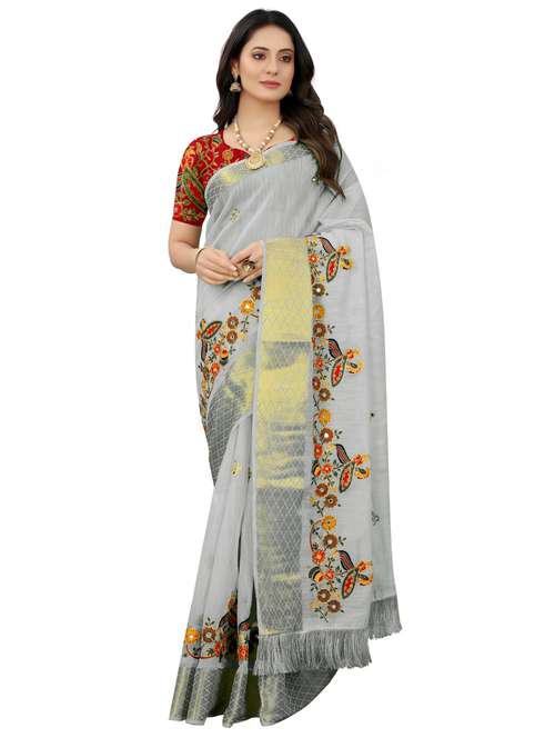 self design embroidered saree with blouse - 20206098 - Very Small Image - 1
