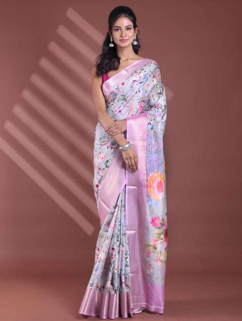 - » women floral bordered saree with blouse