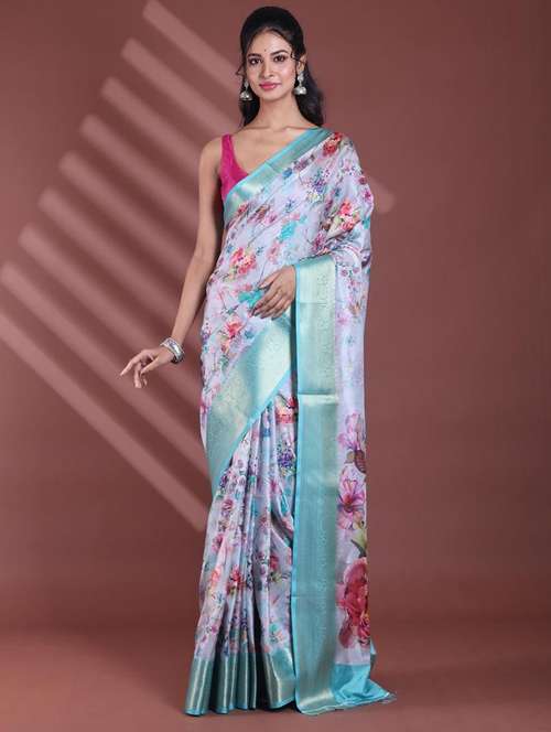 - » women floral bordered saree with blouse