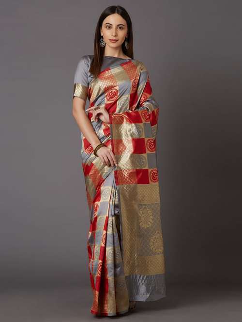 - » women's checks grey colored saree with blouse