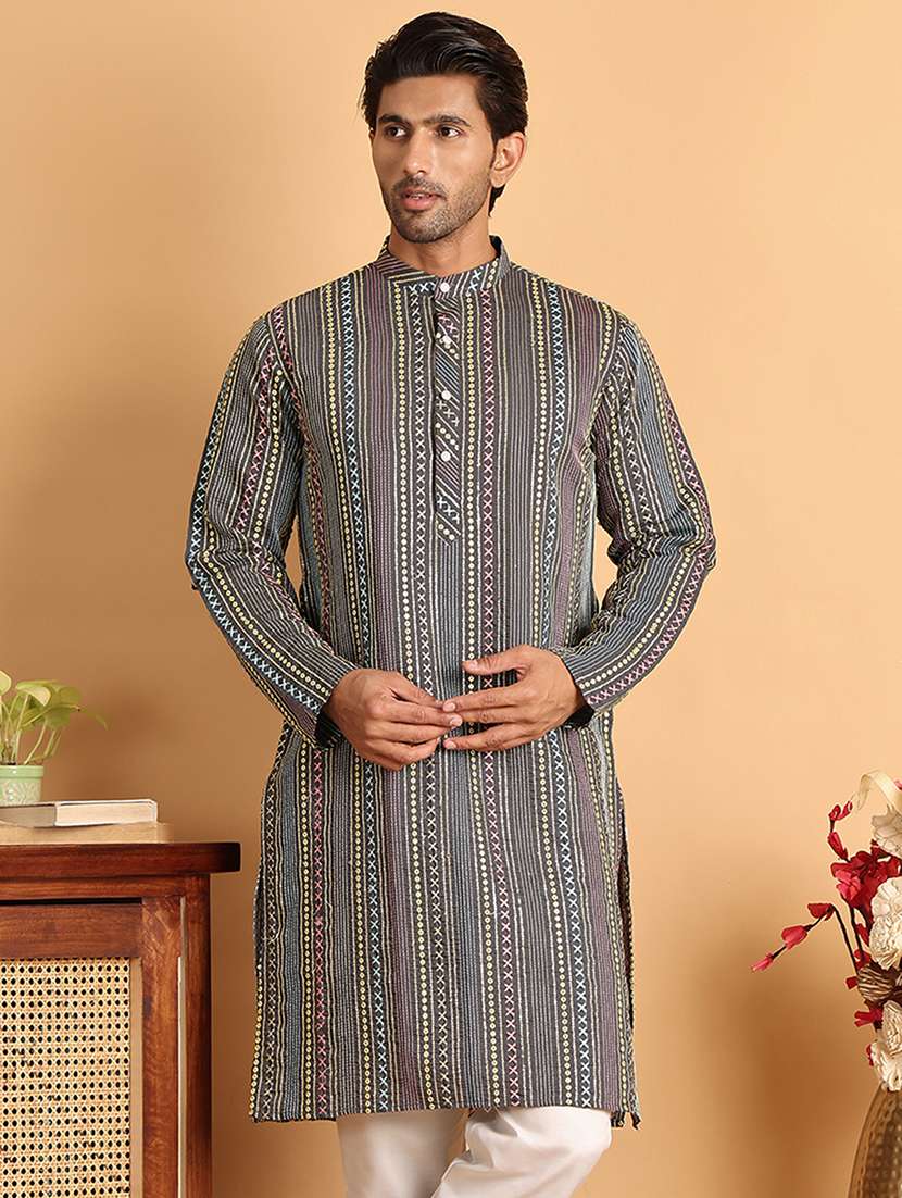- » men embroidered mandarin neck long kurta