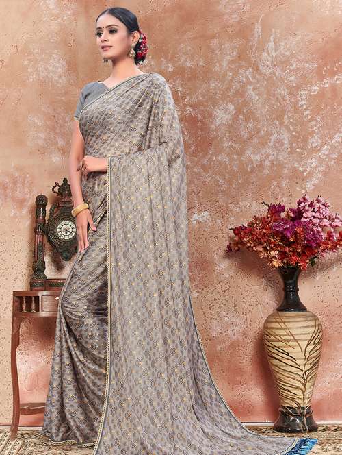 lace detailed printed saree with blouse