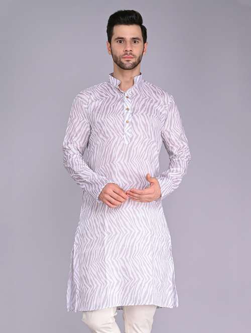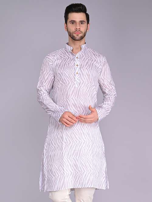 - » men mandarin neck printed long kurta