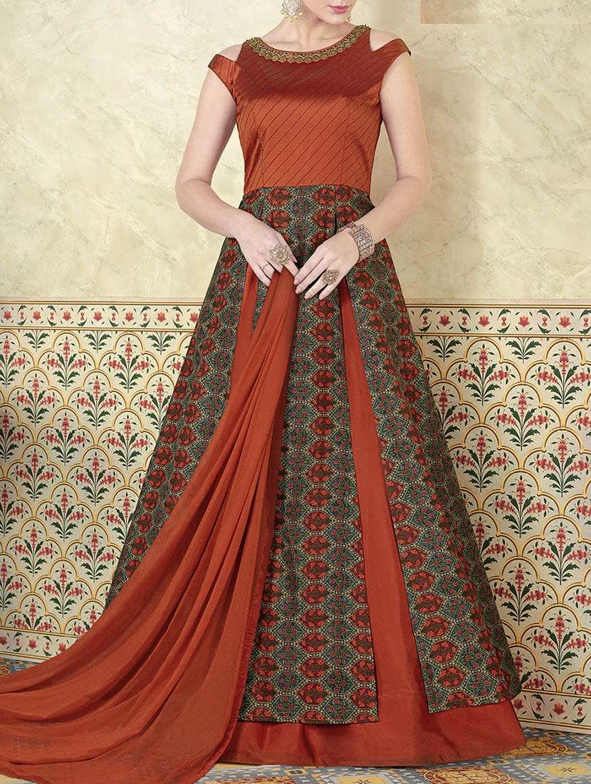 embroidered flared semi-stitched suit - 14675242 - Very Small Image - 1