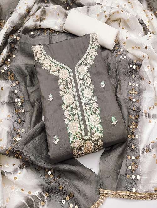 - Look ultra gorgeous in unstitched suits from Lilots and grab these beautiful suits in grey colour.