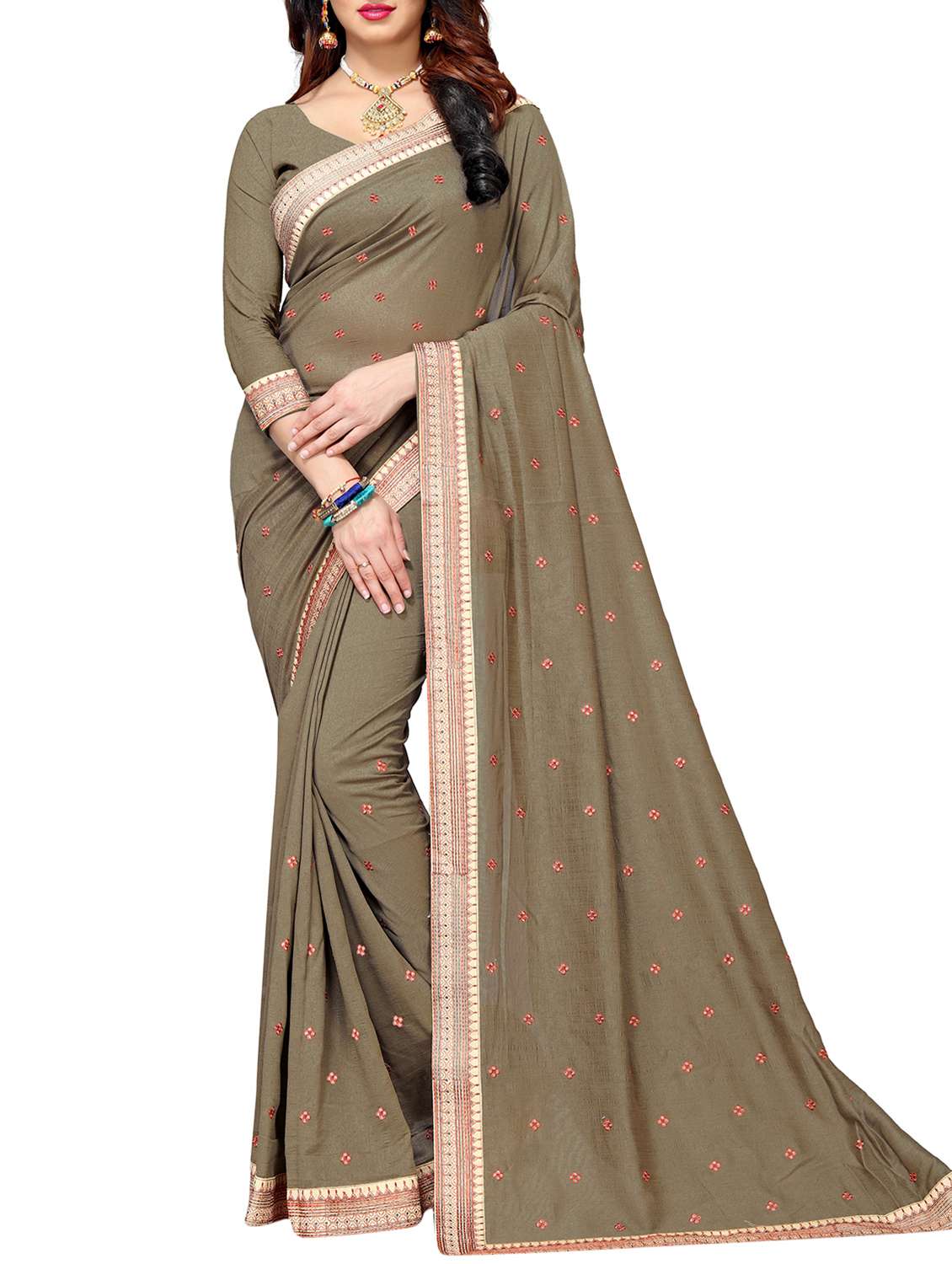 Wooden Mulberry Silk Embroidered Border with Embroidered Butti Saree With Unstitched Blouse Piece