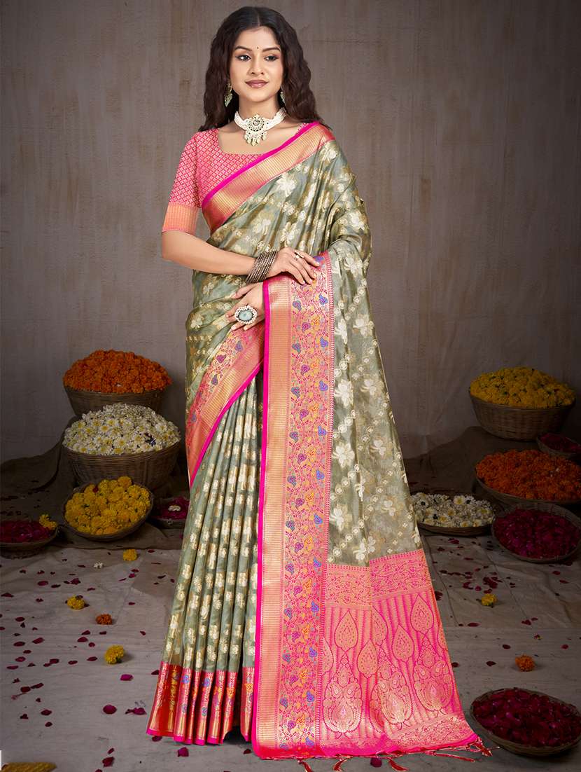 women zari work banarasi saree with blouse