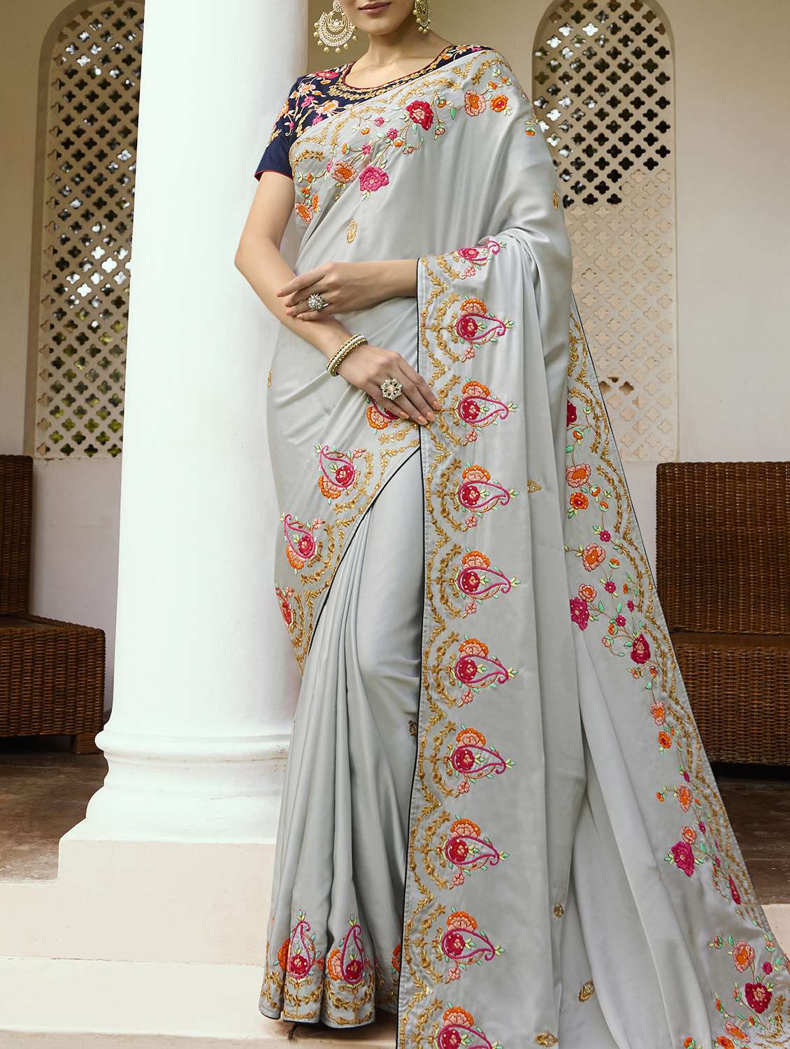 - » floral embroidered saree with blouse
