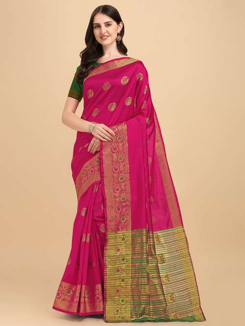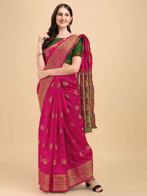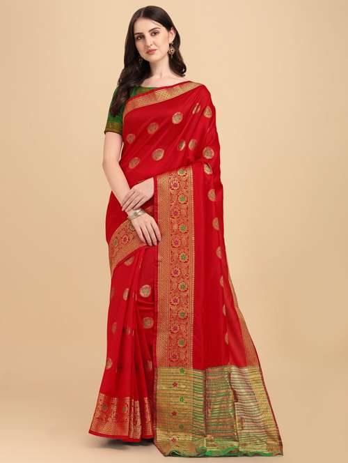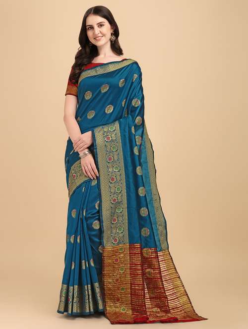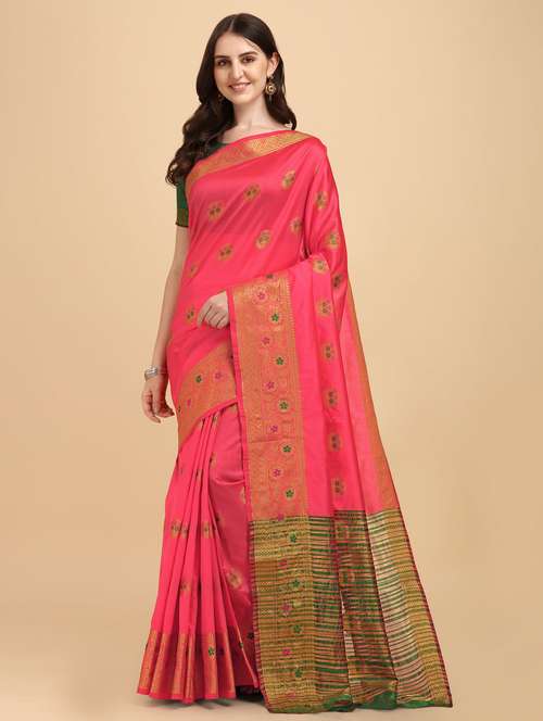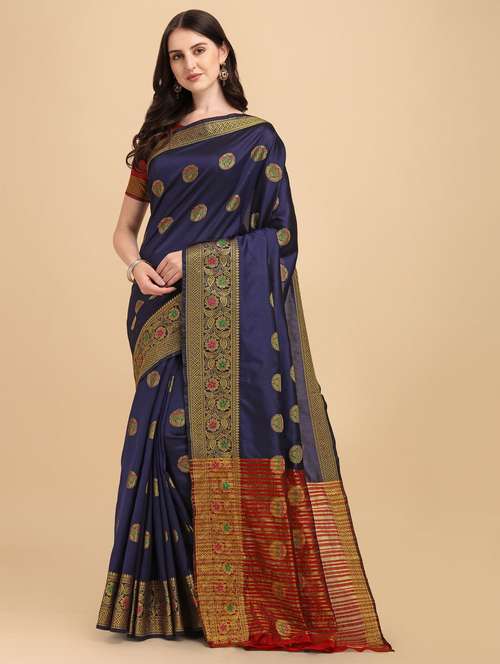- » self design zari work woven saree with blouse
