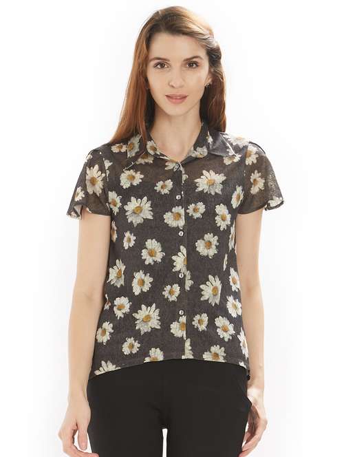 - » short sleeved floral asymmetric shirt