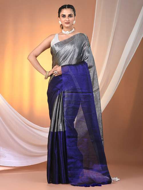 A saree that spells elegance and beauty. This saree hugs your curves to give you an alluring look. The captivating color, the sheen texture is everything you will need this season. Style this up with oxidized jewelry for a fab look!
