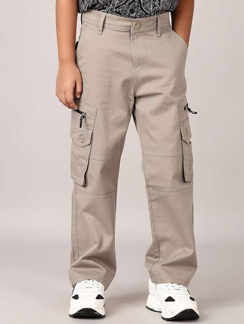 boys grey solid mid rise cargo