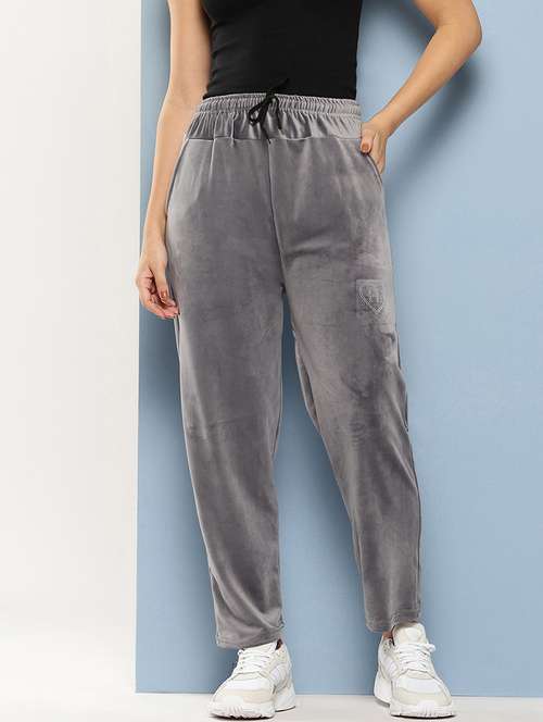 Aarika Womens Casual Wear Grey Colour Embellished Velvet Pant