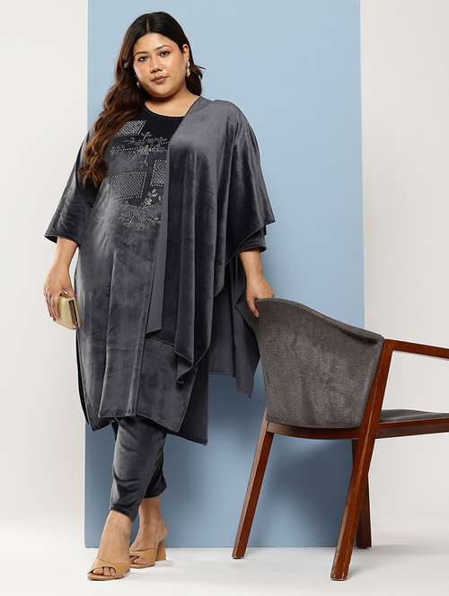 women plus size embellished three quarter sleeve kurta pant with dupatta set