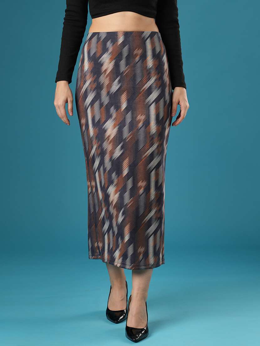- » globus women dark grey mid-rise canvas hazzy print back slit a-line midi skirt