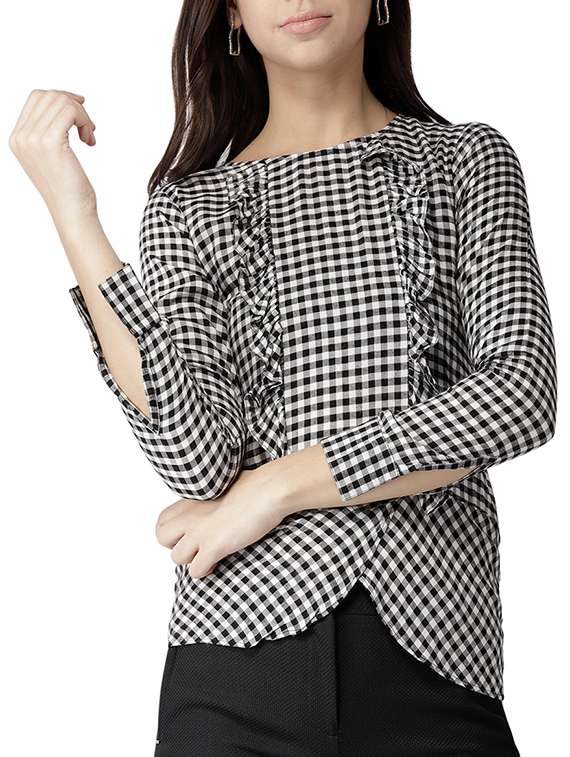 - » frill detail checkered asymmetric top