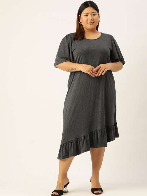 women's ruffle solid dress - 19777852 - Very Small Image - 1