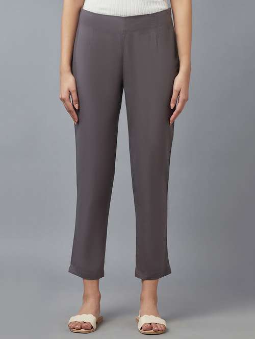 grey solid straight pant