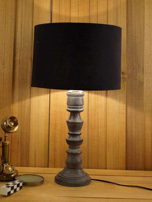 - » grey mango wood table lamp with drum shade
