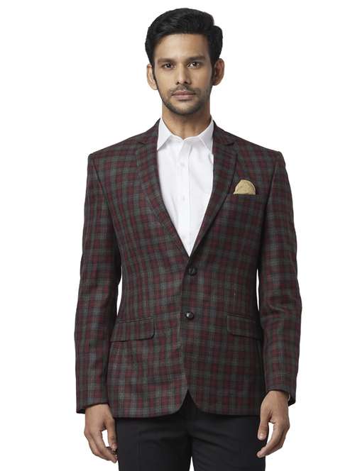 grey checkered single breasted formal blazer - 17592327 - Very Small Image - 1