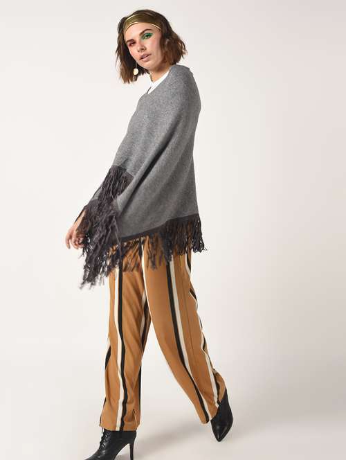 - » fringed edge v-neck poncho