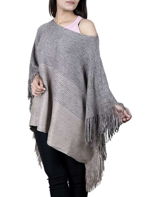 - » single shoulder fringed hem poncho