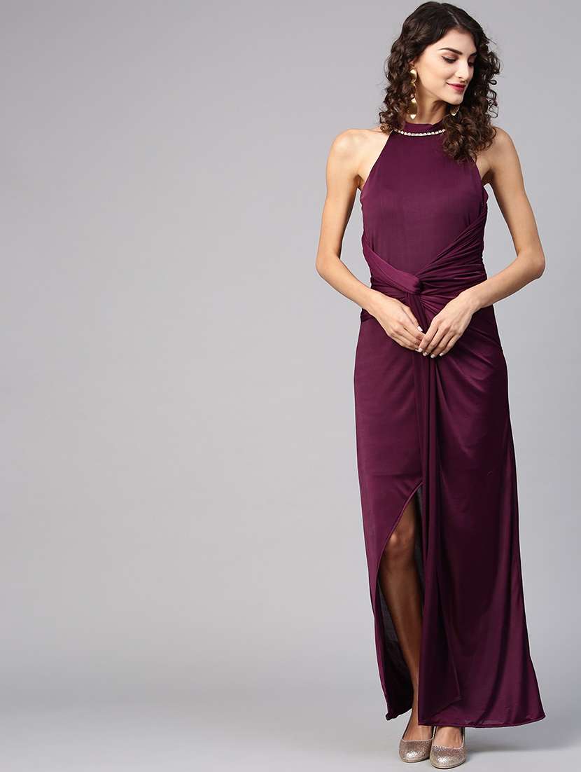 - » halter neck solid maxi dress