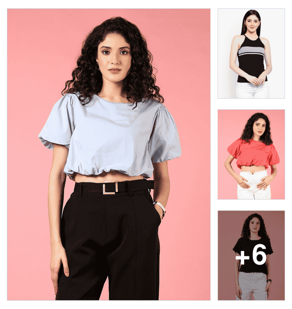 women's crop collared top