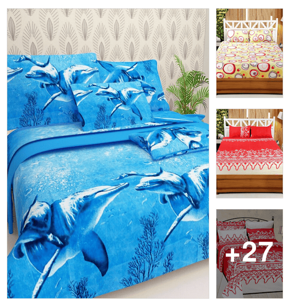 printed double bedsheet with 2 pillow cover