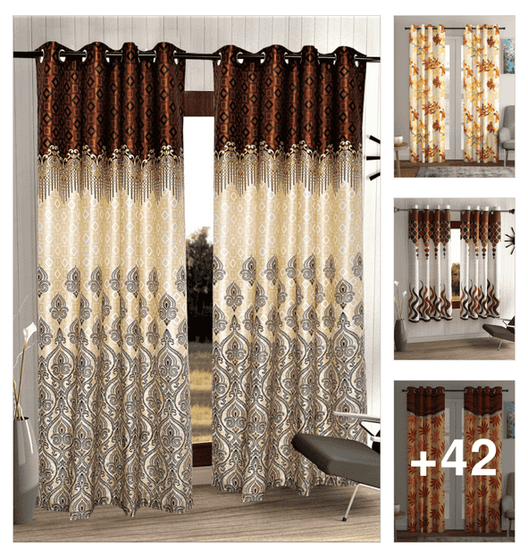 fashion string 2 pieces solid patch floral blossoms eyelet polyester long door curtains - 9 feet, grey