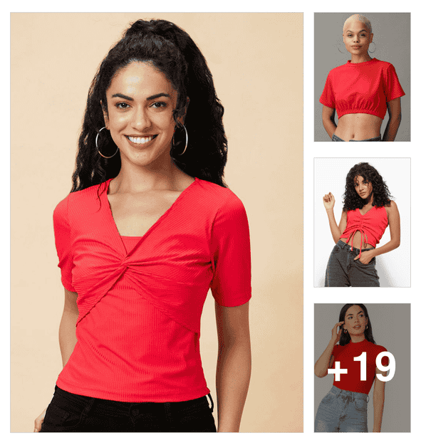 women red solid shoulder strap crop top