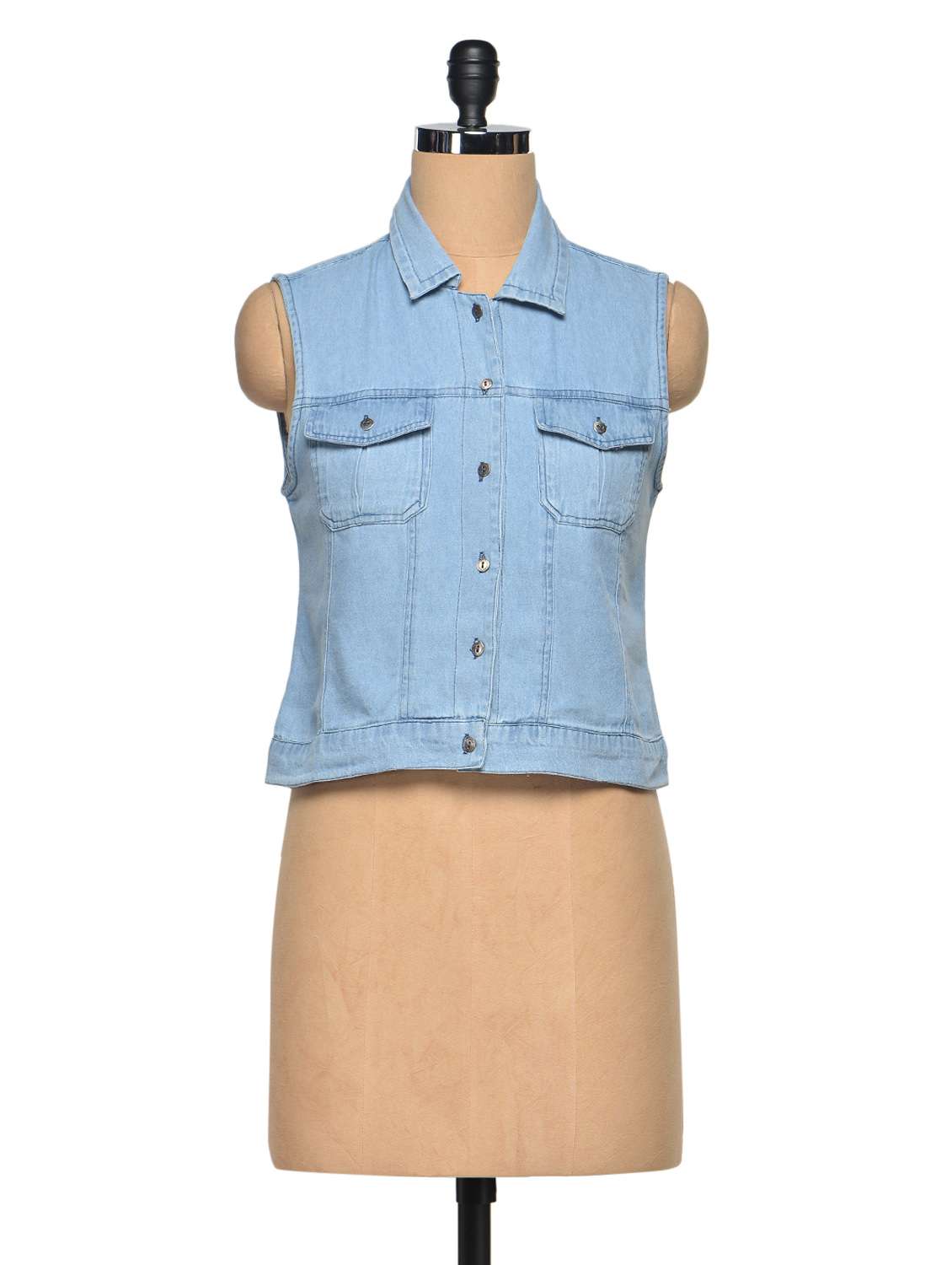 - » ice blue flap pocket denim short jacket