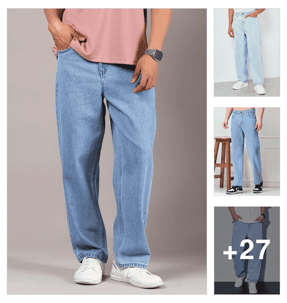 men plain mid rise baggy jeans