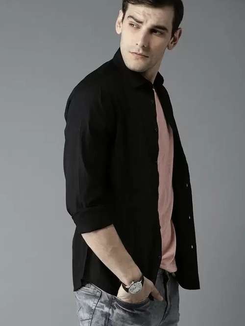 men solid cotton casual shirt
