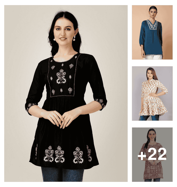 women embroidered three quarter sleeve short kurti