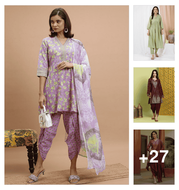 women three quarter sleeve anarkali kurta pant with dupatta set