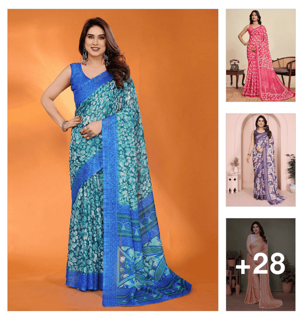 women's printed white colored saree with blouse