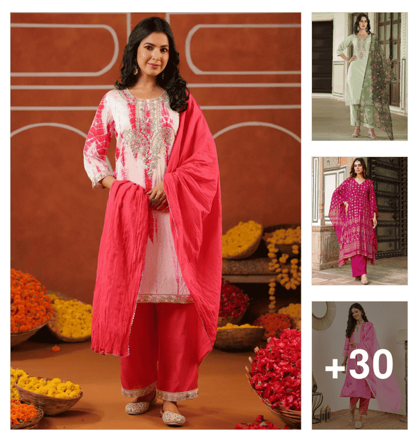 women three quarter sleeve kurta pant with dupatta set