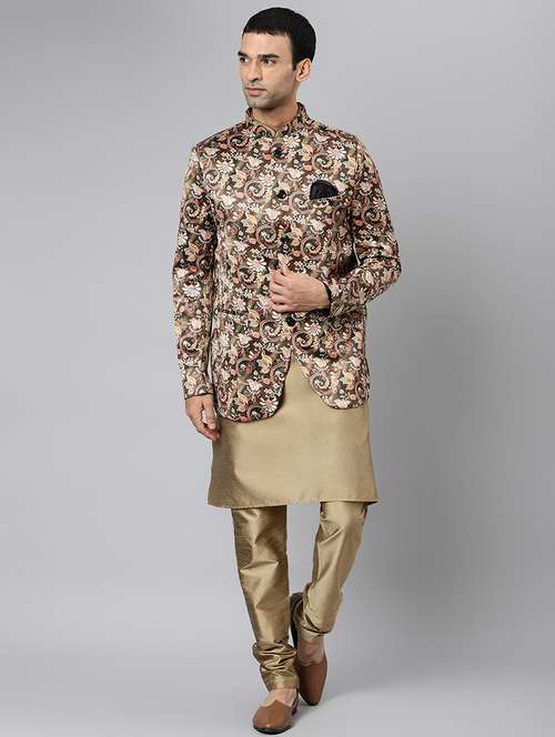 khakhi printed kurta pyjama ethnic wear set