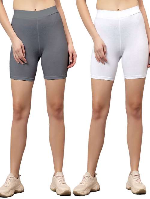 - » pack of 2 multi colored solid mid rise cycling shorts