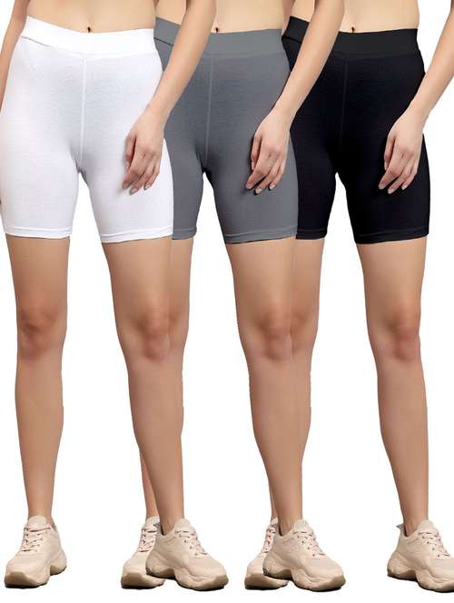 pack of 3 multi colored solid mid rise cycling shorts  - 21179522 - Very Small Image - 1
