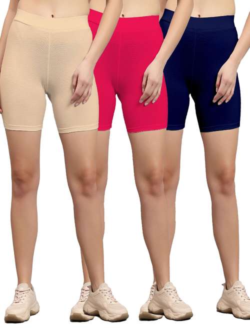 pack of 3 multi colored solid mid rise cycling shorts  - 21179547 - Very Small Image - 1