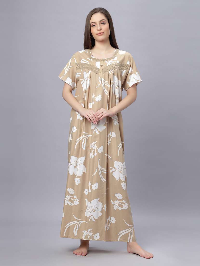 Quira Comfortable Women's Full Length Cotton Blend Half Sleeves Nighty, Soft and Elegant Print