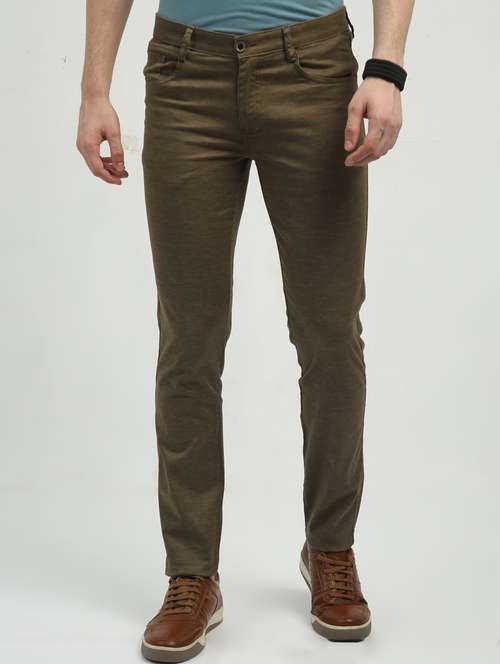 - » men solid olive cotton slim fit casual trouser