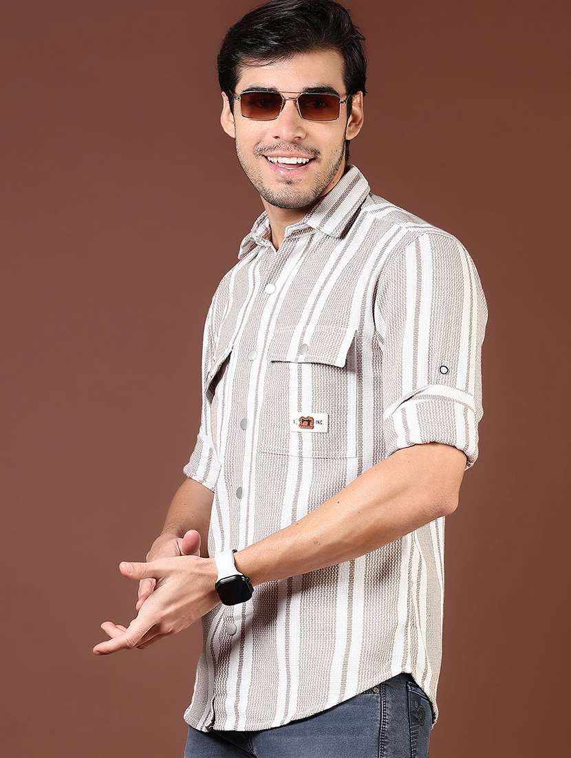 - » men beige stripes long sleeve regular fit casual shirt