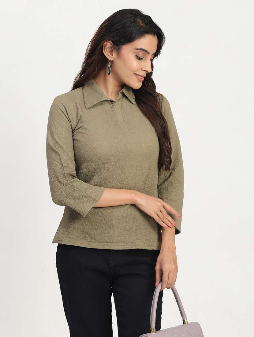 TrendRush Women Shirt Collar Khakhee Green Top adds a modern twist to everyday dressing. Crafted with a structured collar and minimal design, it offers timeless appeal. Its breathable fabric keeps you comfortable while maintaining a polished look. Ideal for both weekday meetings and relaxed weekend outings.