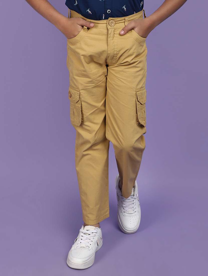 boys khaki solid mid rise cargo