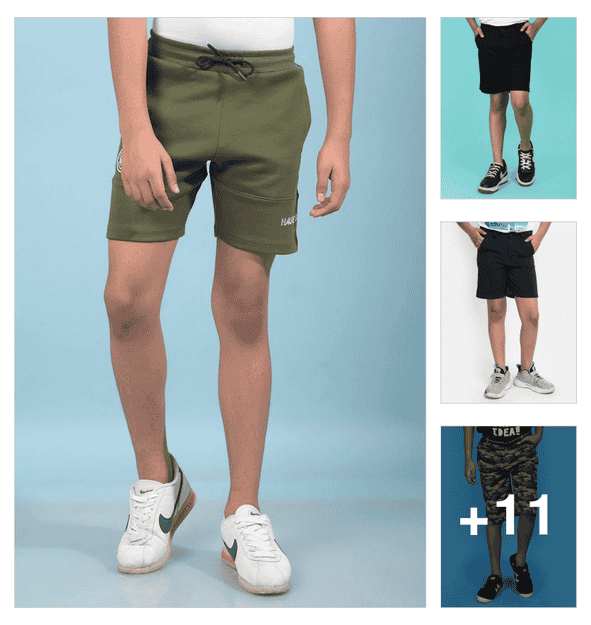boys blue printed mid rise cargo three fourth
