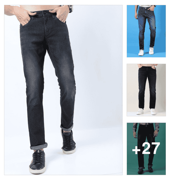 men plain mid rise full length jeans